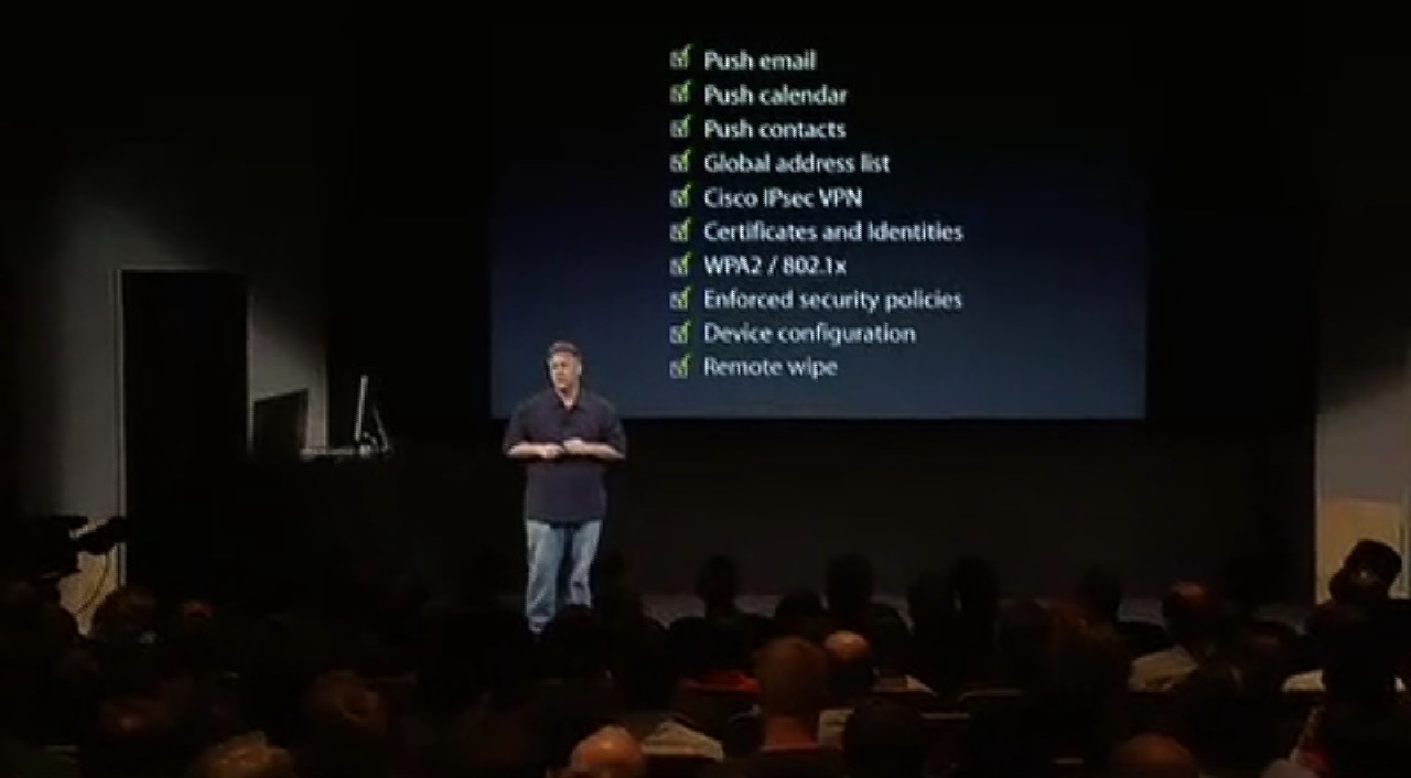 Phil nous explique ensuite quelles sont les fonctions demandées pas les entreprises modernes. Et, miracle, l’iPhone est capable de faire tout ce que demande ces entreprises ! 🙄